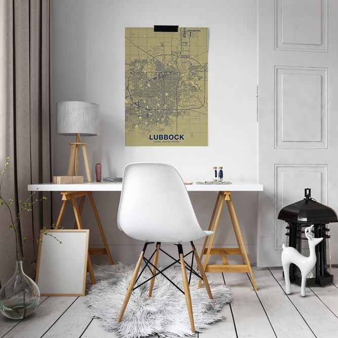 LUBBOCK Texas TX US map poster color Hometown City Print Modern Home Decor Office Decoration Wall Art Dorm Bedroom Gift
